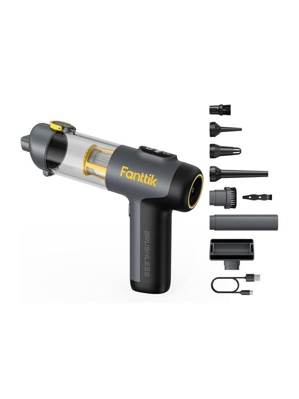 Fanttik Slim V9 Mix er en kompakt bilstøvsuger, der kombinerer funktionerne støvsugning, blæsning, pumpning og luftudsugning. Med et sæt tilbehør kan den effektivt rengøre sæder, sprækker, instrumentbræt, tæpper, ventilationsåbninger og andre svært tilgæn